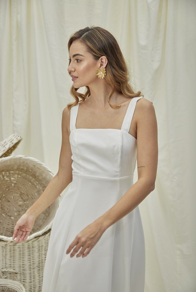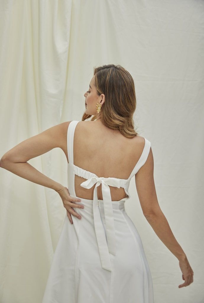 La silueta delicada y femenina de nuestro vestido midi Palmer te hará sentir cómoda y con estilo cada vez que lo uses, su escote en la espalda con el detalle del corbatín, aportan un toque sutil de sensualidad a su diseño.