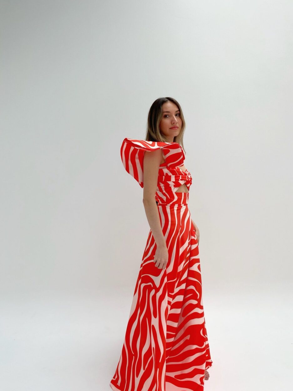 Top con golas en un hombro, con cierre y escote cruzado. Ideal para bodas o ceremonias importantes donde quieras destacar.
