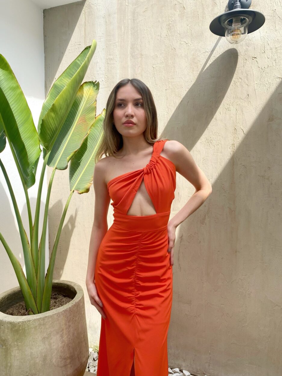 El drapeado en caderas, escote en piernas y el ajuste se forma tan naturalmente en este vestido que dan ganas de usarlo en todo momento. Un must have un delicado escote en el busto que te hará lucir femenina y delicada.