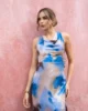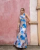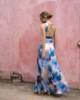 - Cócteles o eventos de noche: Su tono azul y caída fluida brillan bajo luces cálidas, creando una silueta inolvidable.
